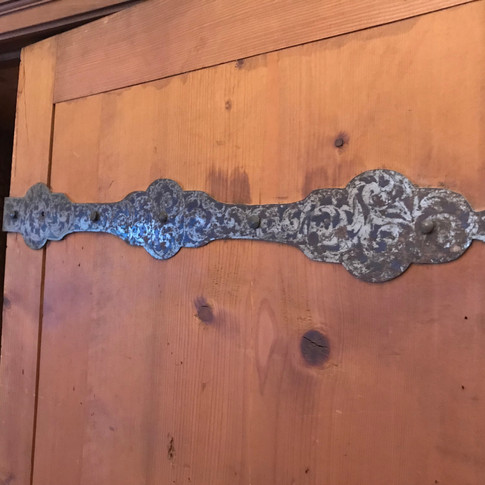 Herausragender antiker Schrank, Barock um 1770, Nussbaum massiv, grosser Kranz über Türen, diese mit doppelt gestemmten Füllungen, Originalschlösser und Schlüssel, unrestauriert, hervorragend erhalten.